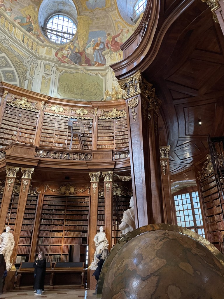 As a book lover the National Library was a personal must-see. Although a relatively small space, the level of detail in decoration was unmatched. Stepping into the room made me feel like I was Belle in Beauty and the Beast. The walls were filled with endless polished wooden bookshelves that rose up on two levels to the whimsically painted ceilings. These ceilings were a treasure trove of religious and symbolic iconography and rival some of the prettiest church paintings I’ve seen. Gold and marble was thrown around every surface, and if that glamour wasn’t enough, there were statues and a pair of massive topographical globes dotted around the floor. You can schedule in an hour here and still have time to fit in one last activity in Vienna.