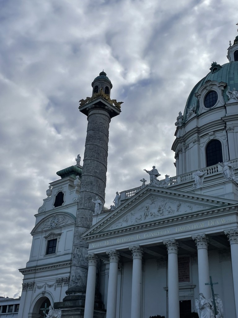 I chose the Karlskirche which offers a view out over the city from its roof. There are many iconic churches in Austria and whilst everything paled after the Saint Etienne Cathedral, the inside of the Karlskirche mixed the history of the ancient building with a modern art display of hanging fluorescent tubes of light. The display changes periodically and can be marvelled at from the gallery and also below in the pews.